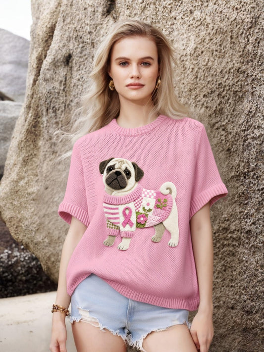 Mujer Lovely Pug Felt Art Cozy Knit Top