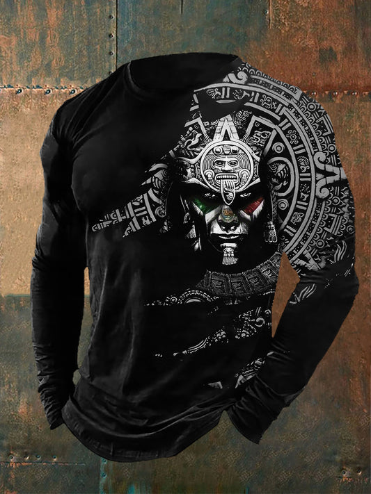Camiseta sin mangas de la manera de la vendimia de la impresión de la máscara de Azteca de los hombres