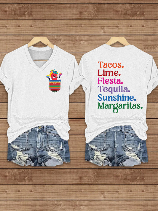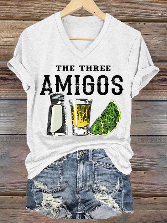Cinco de Mayo Margaritas And Good Friends Camiseta de manga corta con cuello en V para mujer