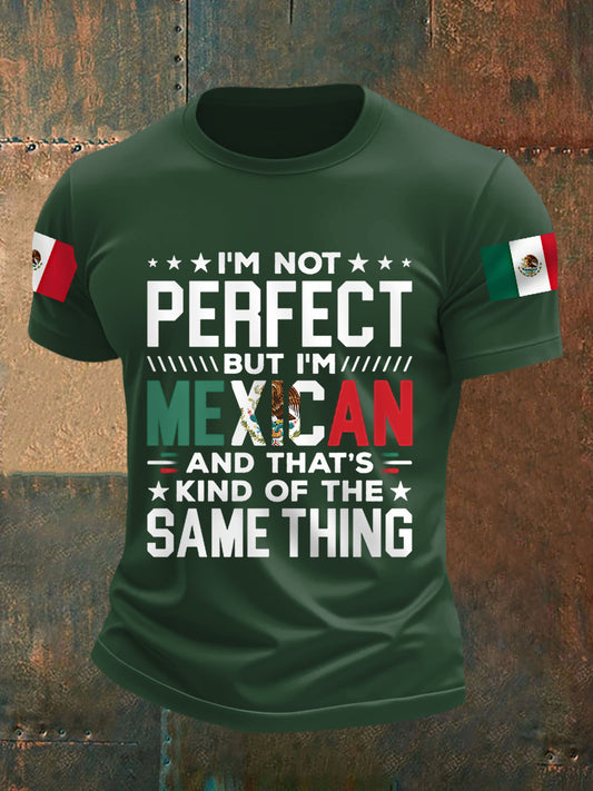 Hombres no soy perfecto pero soy mexicano y eso es algo de lo mismo Mexican Flag Print Casual Tee