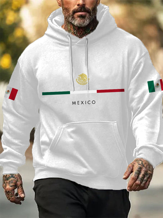 Hombres Mexican Flag Print Casual Hoodie