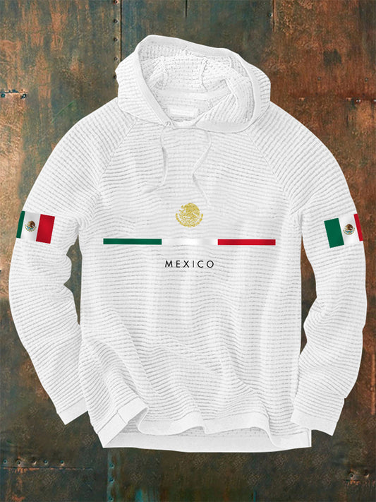 Hombres de impresión bandera mexicana Casual Waffle Hoodie