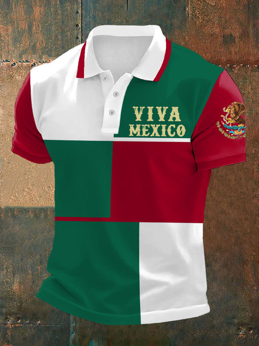 Polo Casual con Estampado Colorblock Viva Mexico para Hombre