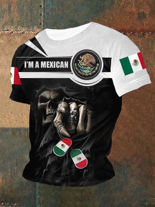 Hombres I'm A Mexican Skeleton Mexico Falg Print Casual Tee