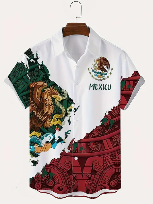 Camisa de manga corta casual del día de la independencia de la bandera mexicana de los hombres