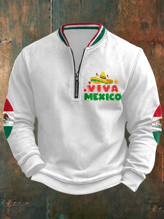 Sudadera casual con cremallera Viva México para hombre