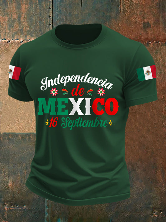Bandera mexicana Día de la Independencia VIVA camiseta mexicana de manga corta casual para hombre