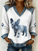 Bulldog Francés Patrón Denim Patchwork Art V-Neck Top Mujer