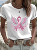 Camiseta casual con estampado de lentejuelas Alas de cinta de cáncer de mama para mujer