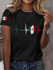 Camiseta casual del día de la independencia mexicana de la impresión del latido del corazón de la bandera mexicana de las mujeres