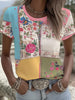 Camiseta de manga corta con estampado floral de cáncer de mama para mujer