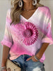 Camiseta de manga larga casual con estampado de cinta rosa para mujer