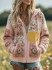 Chaqueta con cremallera casual con estampado floral rosa para mujer