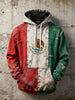 Hombres Vintage Mexican Flag Patchwork Print Casual Hoodie