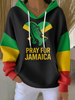 Las mujeres Retro Pray For Jamaica Strong Cross Reggae Rojo, Verde, Y Oro Imprimir Con Capucha