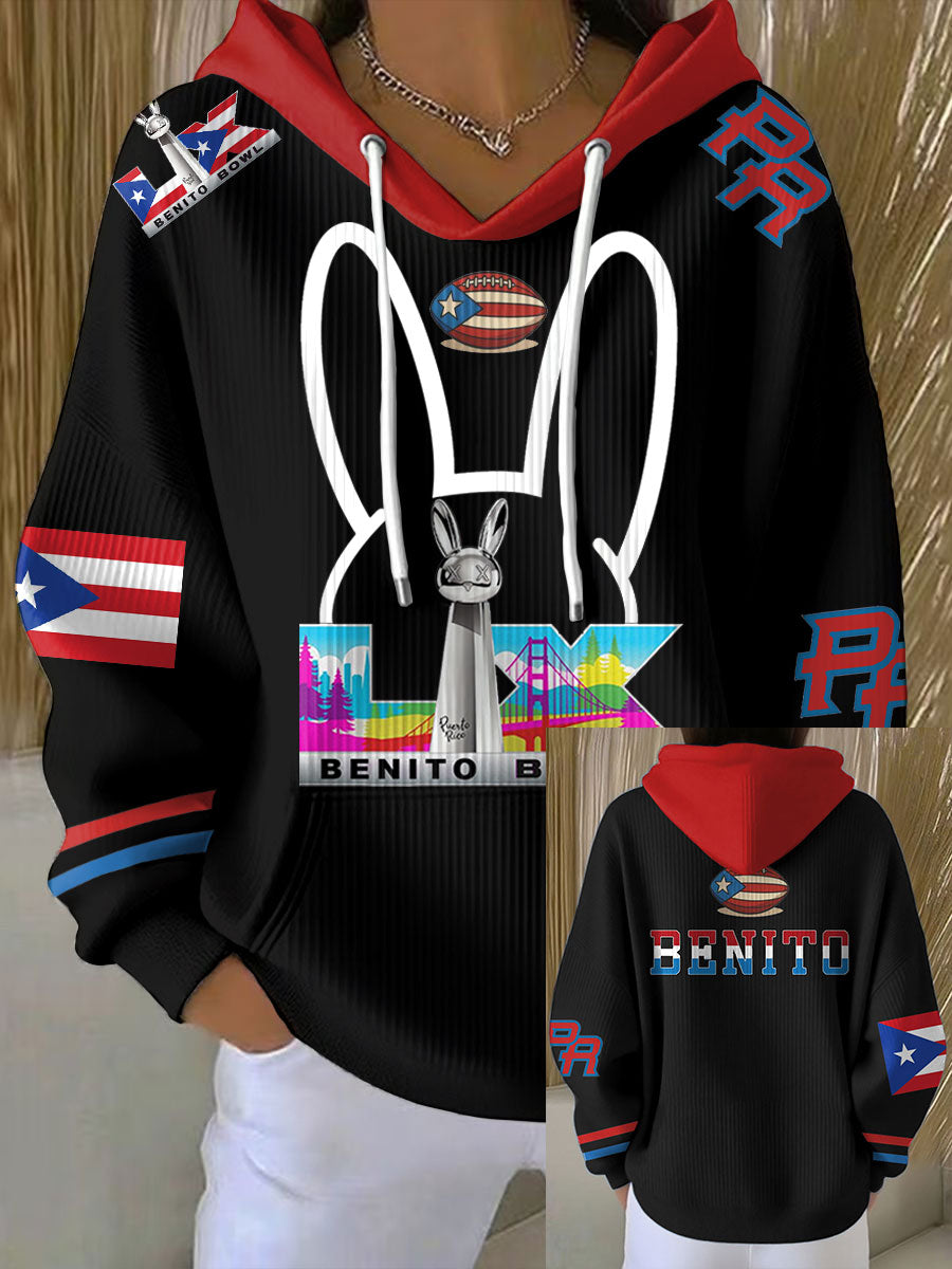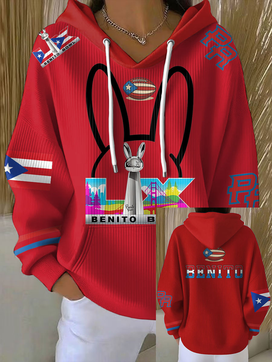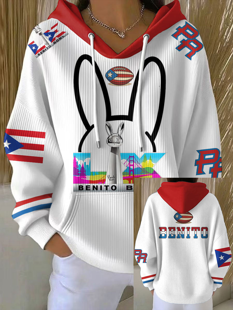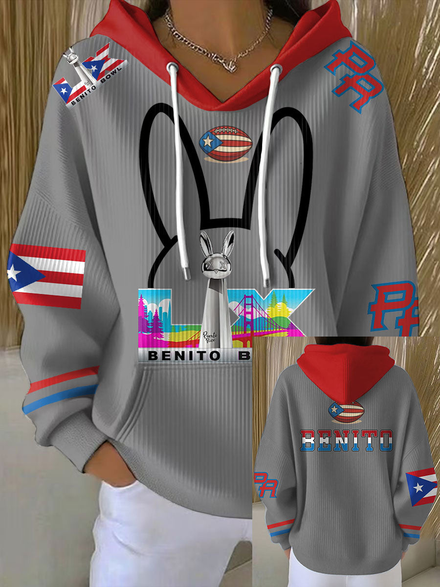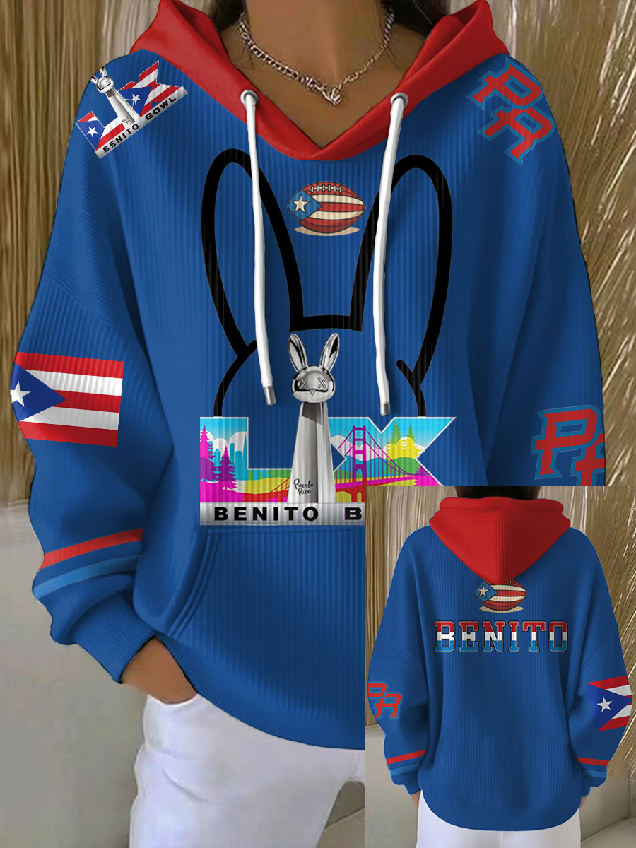 Mujer Bunny Football Music Lover Impreso Hoodie