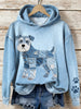 Mujer Denim Patchwork Art Schnauzer Dog Pattern Hoodie