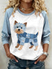Mujer Denim Patchwork Art Yorkshire Terrier Dog Pattern Sudadera