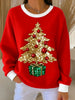 Retro Christmas Tree Gift Sequins Sudadera de manga larga suelta