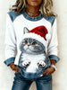 Sudadera de patchwork de denim de gato de Navidad vintage para mujer