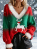 Suéter recortado de piel de manga larga suelto de gradiente de renos de Navidad retro para mujer