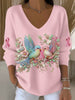 Top con cuello en V para mujer Romantic Hummingbird Rhinestone Art