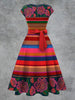 Vestido midi con cinturón de arco de impresión floral vintage para mujer