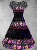 Vestido midi de encaje elegante estampado de arte floral mexicano vintage para mujer