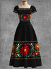 Vestido Midi elegante mexicano de la impresión floral del arte de la vendimia de las mujeres