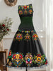 Vestido Midi elegante mexicano de la impresión floral del arte de la vendimia de las mujeres